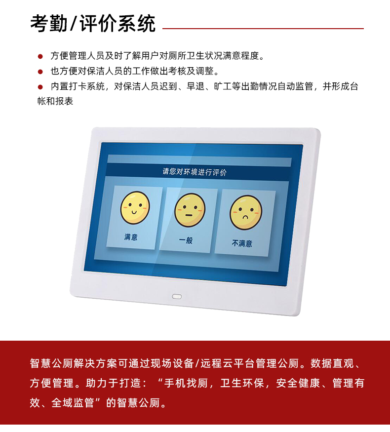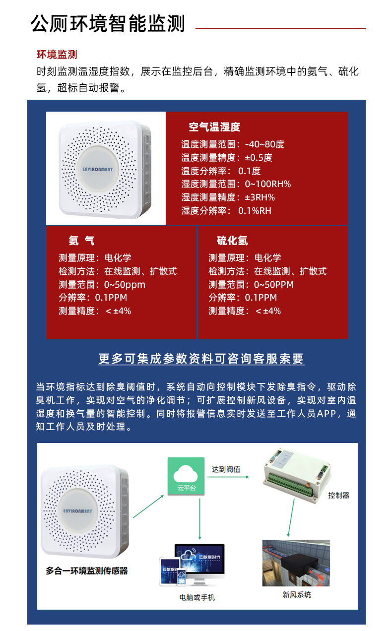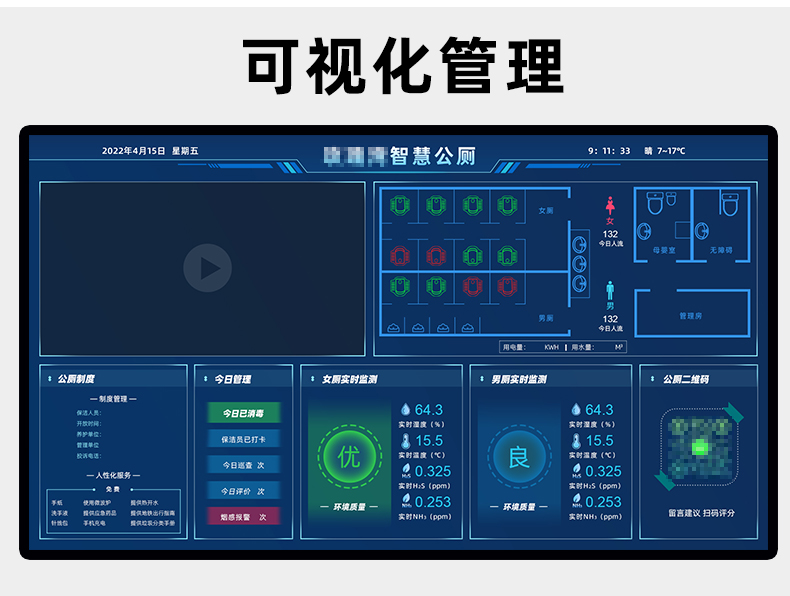 摘要:智慧廁所系統(tǒng)采用最新物聯(lián)網(wǎng)技術(shù)。主要由三部分構(gòu)成:感知層、傳輸層、應(yīng)用層。集異味氣體探測、客流量、蹲位、公廁引導(dǎo)組成。通過環(huán)境傳感器采集公廁環(huán)境實(shí)時(shí)數(shù)據(jù)實(shí)時(shí)上傳至云平臺。大屏顯示公廁環(huán)境參數(shù),異味超標(biāo)實(shí)時(shí)預(yù)警,同時(shí)接入移動端。實(shí)現(xiàn)現(xiàn)代化,信息化,自動化,智能化的“智慧廁所”。響應(yīng)號召全面建設(shè)現(xiàn)代新都市。